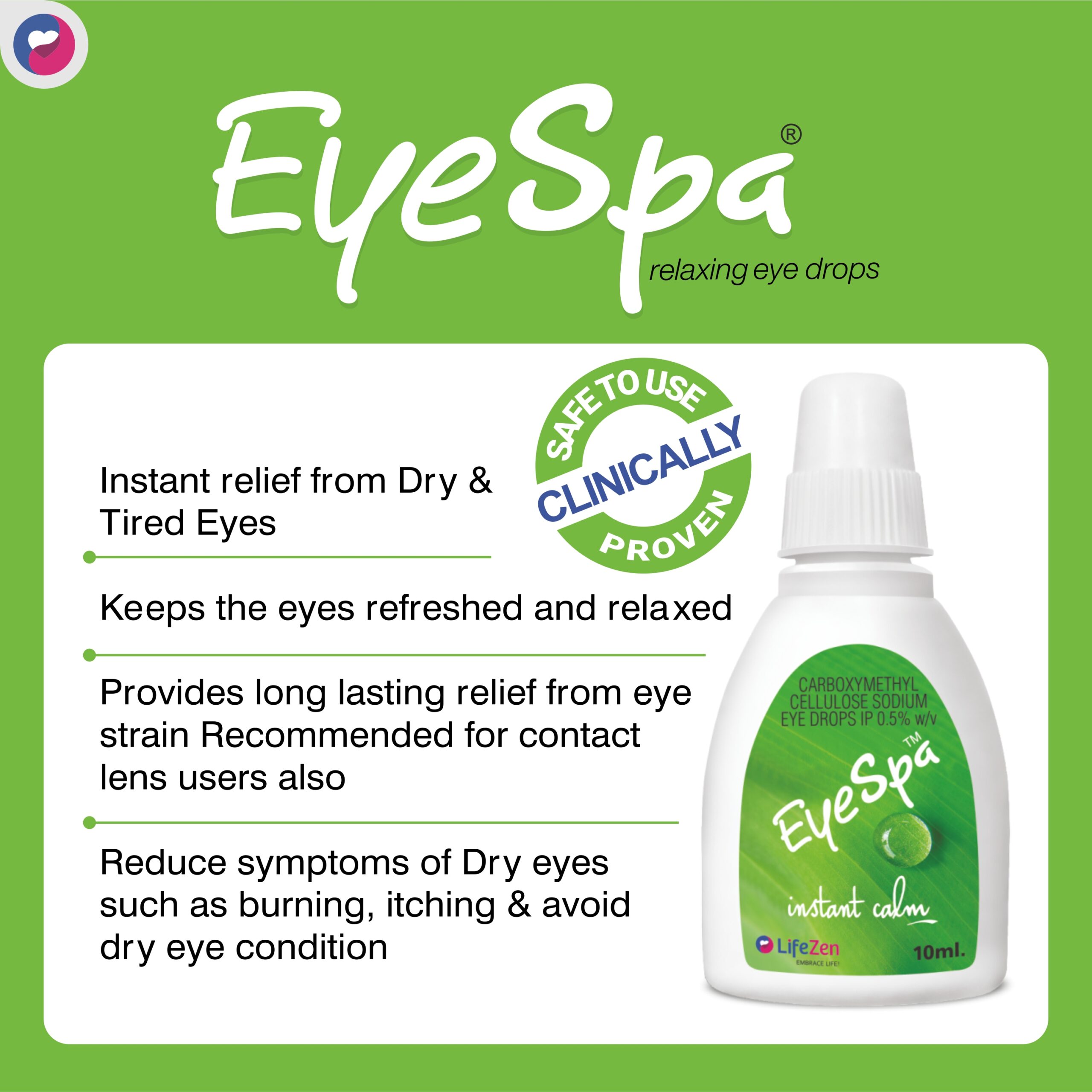 EyeSpa Eye Drops 10ML , Relaxing Eye Drop for Dry and Tired Eyes , Relief From Burning, Itching, And Irritational Eye , Lifezen (Pack of 2)