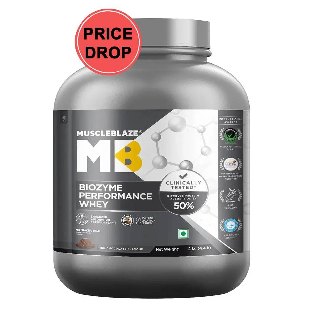 - MuscleBlaze ® Biozyme Performance Whey is a Labdoor, USA tested & certified whey protein formulation with the highest possible grading of A+ for its all-accurate claims & purity. Launched in a delicious Rich Chocolate flavour