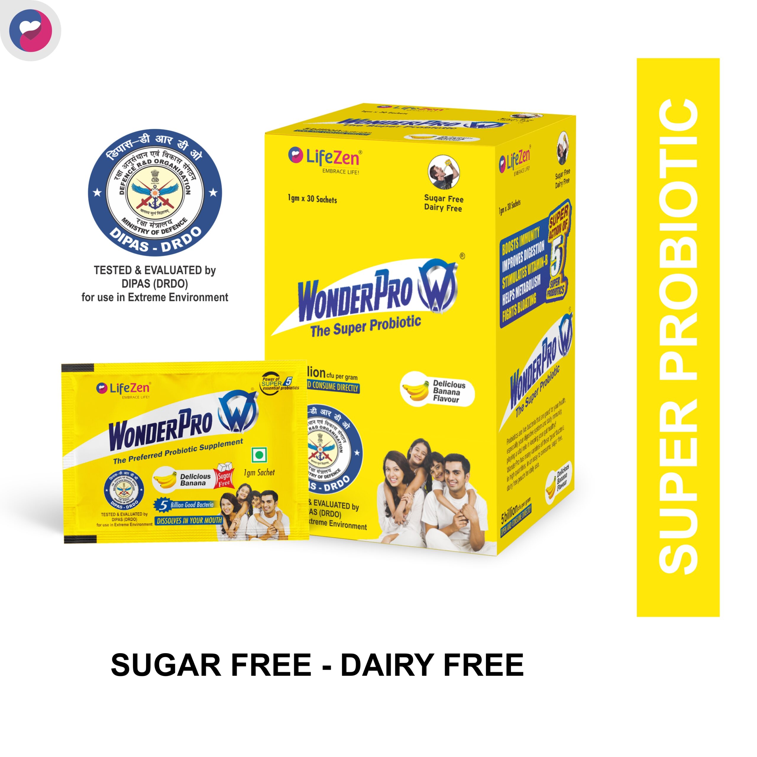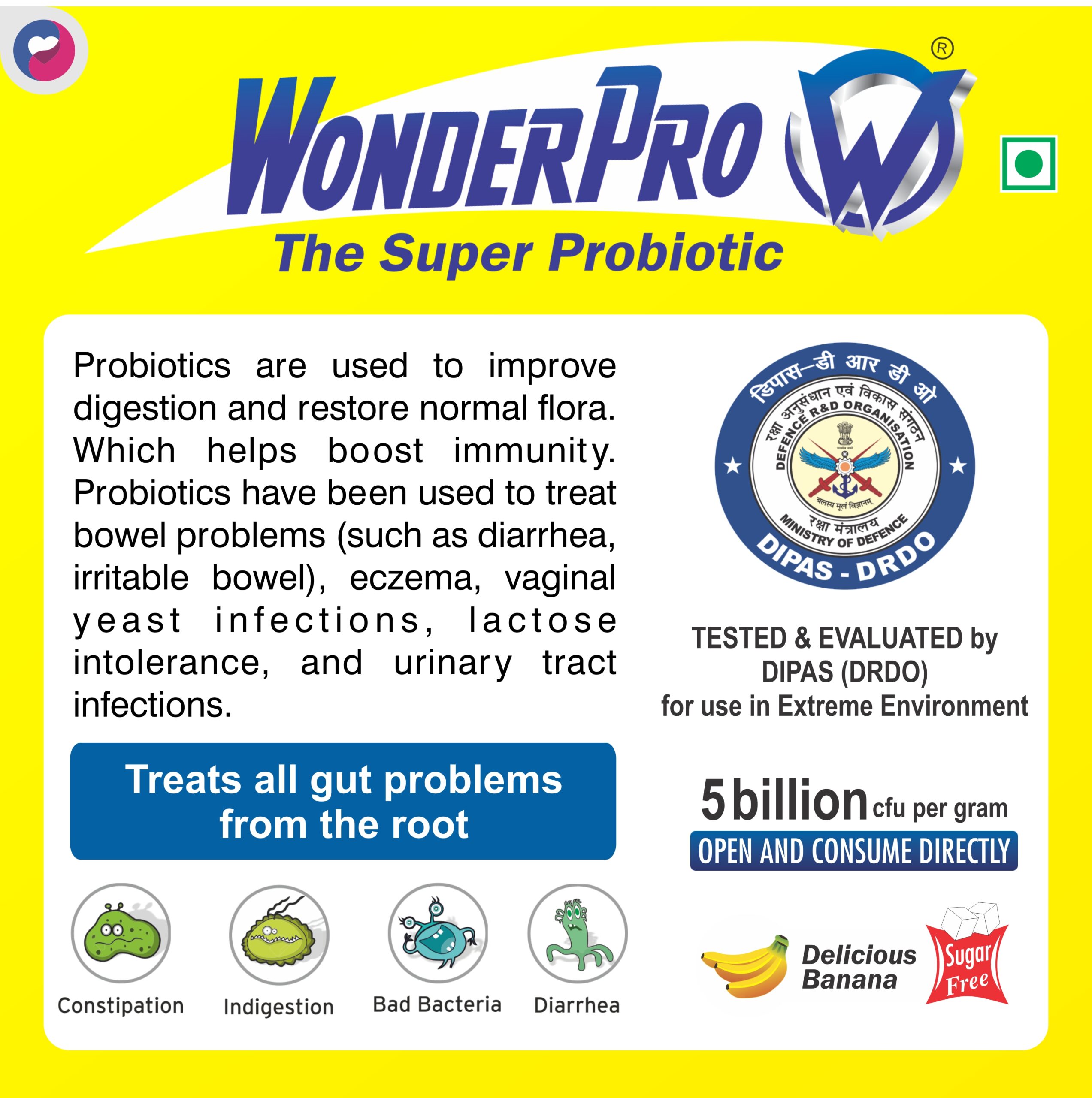 WonderPro super probiotic is a gut health supplement that promotes better gut health and overall wellbeing by boosting immunity. Probiotics maintain a balance among the microbes present in the intestine and support maintaining a healthy gut flora. Probiotics are essential for an active metabolism.