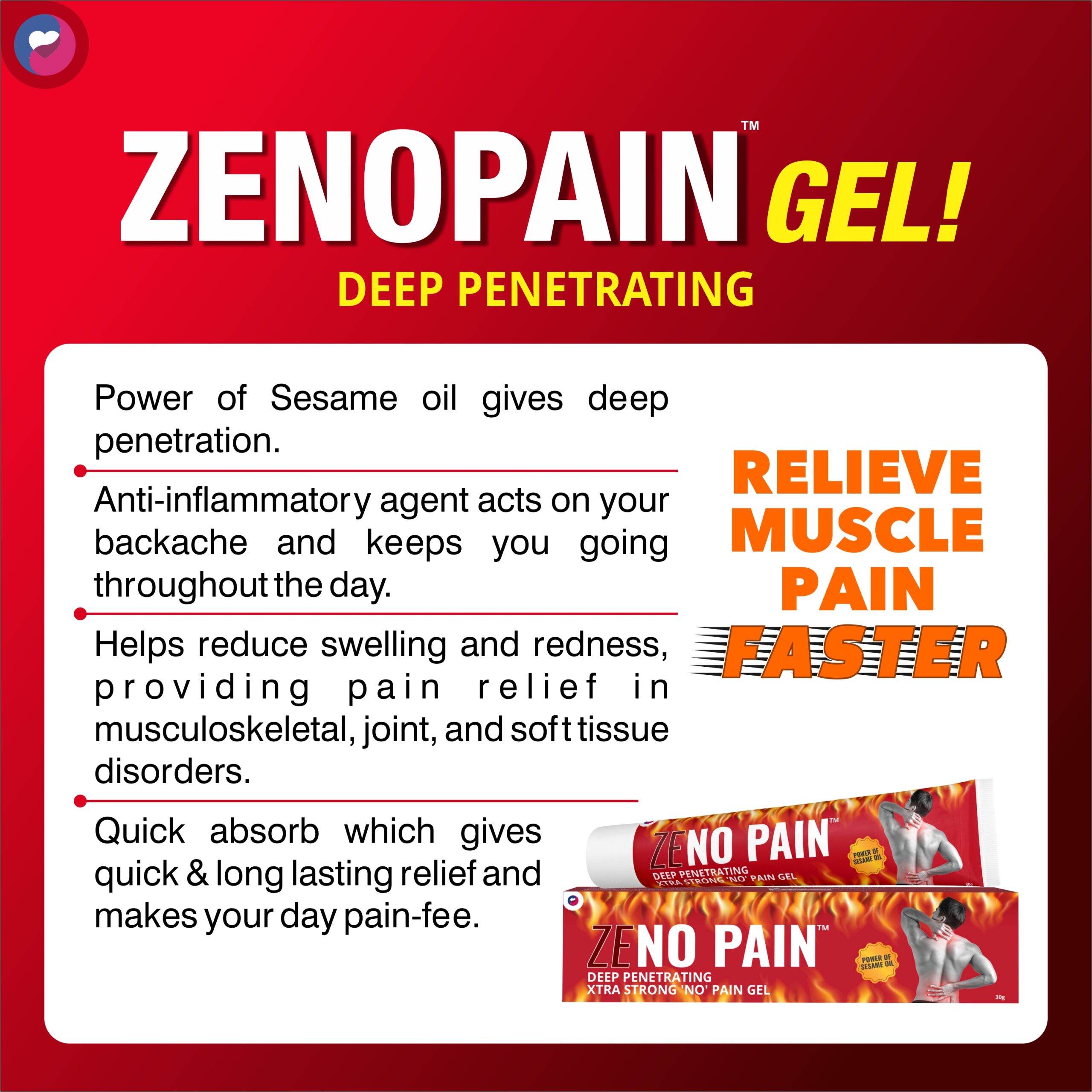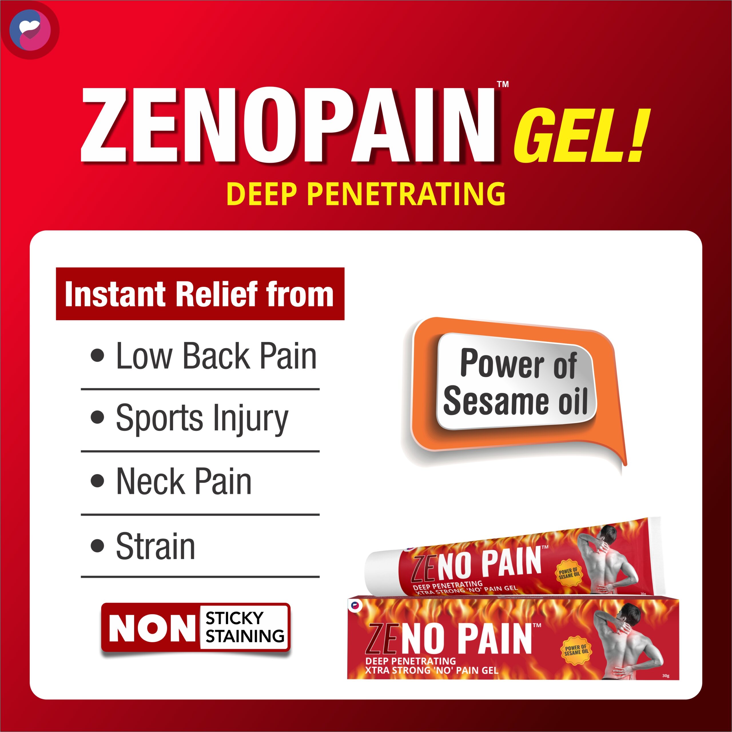 Zenopain Pain relief gel Power of sesame oil non-sticky non-staining , Suitable for Back Pain, Muscle Pain, Joint Pain, Knee Pain, Sports related injuries , 30gm (Pack of 2)
