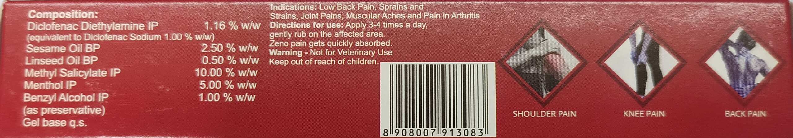 The 30g Zenopain Gel is a pain relief gel that comes in a squeeze tube for easy application. The active ingredients in Zenopain works to give fast pain relief for sprains and muscle aches. A good choice for sport persons to carry along.